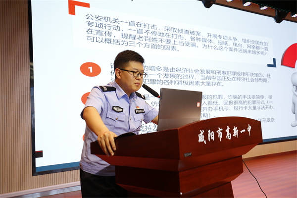 5月30日下午,咸阳市高新一中特邀咸阳市公安局高新分局来校开展拒绝“两卡犯罪”构建无诈校园宣讲会。此次活动旨在向学生宣传“两卡犯罪”的危害性,提高学生们网络安全意识、法制意识、避免受骗意识和自我保护能力,营造良好的校园安全环境。高一年级300余名师生代表参加了此次讲座。