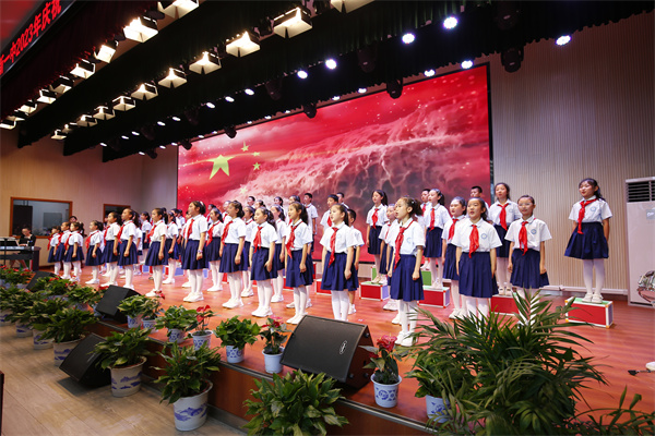 六一歌声如潮、灿烂如梦。大合唱《新时代接班人》拉开大会的帷幕。