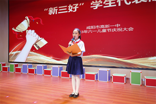 秦都区教育局赵局长讲话,向孩子们致以节日亲切的问候和美好的祝愿,勉励高新学子励志奋斗,茁壮成长!
