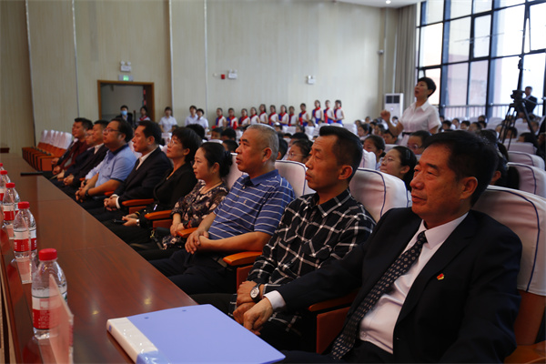 大会特邀高新区管委会四级调研员褚林茂、秦都区渭滨街道办事处主任何云、秦都区教育局副局长赵粉娟、渭滨街道办事处人大工委主任范沙石、高新区管委会办公室副主任李原、凯迪西北橡胶有限公司工会办公室主任李鹏、西北橡胶塑料研究设计院有限公司综合办主任助理李露、咸阳宝石钢管钢绳有限公司副总经济师蔚拾、咸阳西秦橡胶工业有限公司董事长姚振学、陕西天铭智能建筑有限公司副总经理张晓峰等社会各界领导出席,学校党总支书记、校长于建营、副校长程颖斌、杨东、廖荣、李江河、小学部部分师生代表近300余人参加大会。大队辅导员冯娟主持。