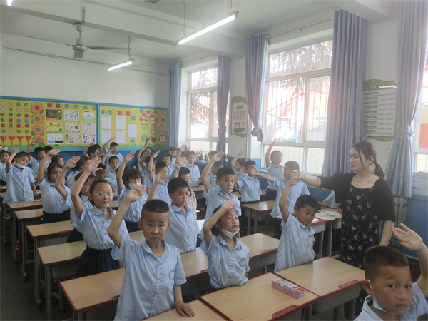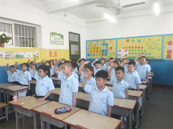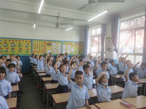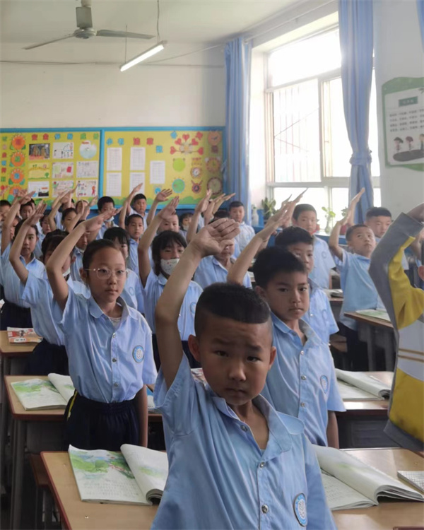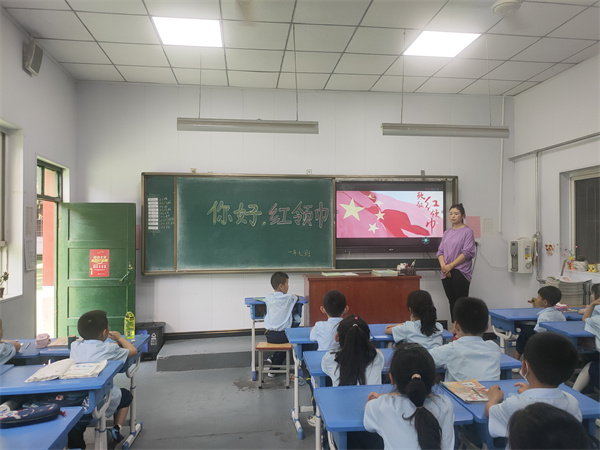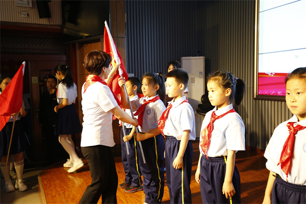 小学部德育主任郭晓阳为新建中队授中队旗。星星在闪耀,火炬在燃烧。胸前的红领巾在召唤着每一个队员。鼓励他们勤奋学习,顽强拼搏,迎接未来的挑战。