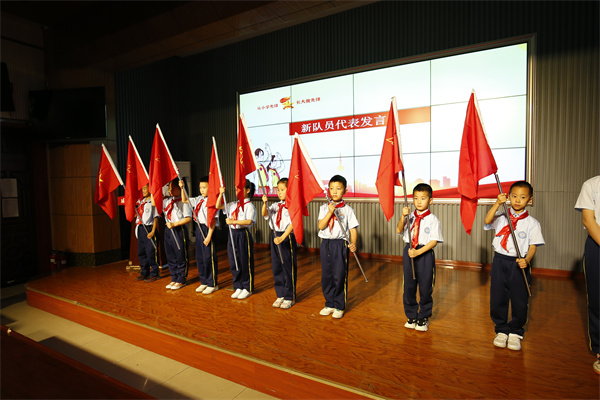 稚嫩的声音表达着自己的喜悦,坚定的语气代表了新队员的决心。一年级四班巨珂涵同学作为新队员代表发言。他的身上彰显了新时代少新队员的优秀品质。