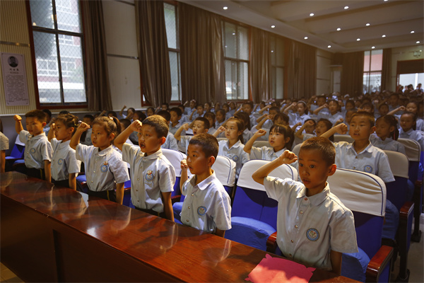 为加强少先队建设,确保少先队礼仪礼节的规范性,5月31日,咸阳市高新一中小学部组织一年级全体师生举行队前教育暨少先队员入队仪式。