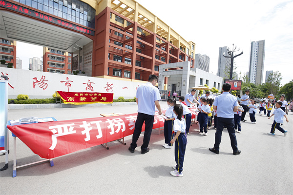6月1日,咸阳市高新一中联合咸阳市公安局高新分局共同开展防拐安全知识宣讲活动,进一步提高少年儿童和家长们对拐卖儿童问题的警惕性。