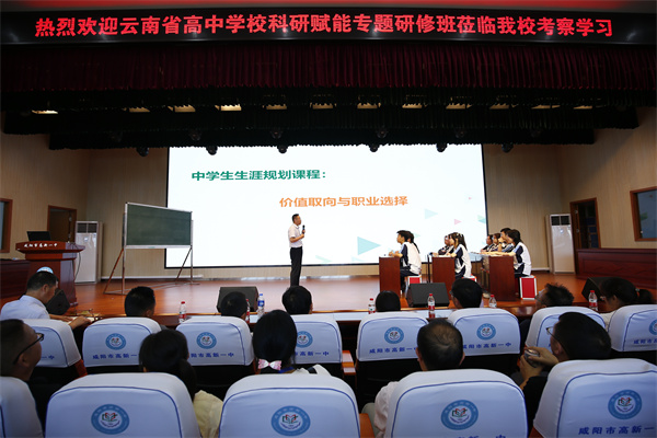 6月13日,云南省高中学科科研赋能专题研修班一行近50人莅临咸阳市高新一中进行参观交流。