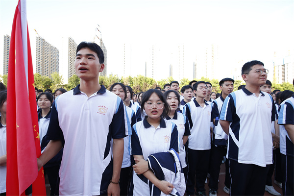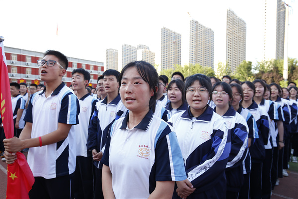 国旗护卫队带领全体师生升国旗、唱国歌,伴随着庄严严肃的氛围,大屏播放《高三启航》视频。往事不可谏,来者犹可追。高二已成为过去式,高三仍有无限可能。