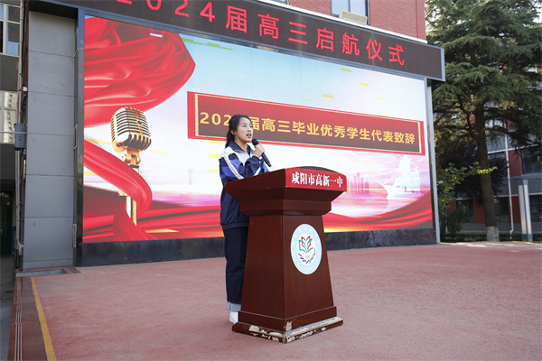 2024届新高三学生代表史倩颖发言,她鼓励全体同学做好心理准备,相信自己实力,不畏失败,用最好的心态对待高考,享受过程。