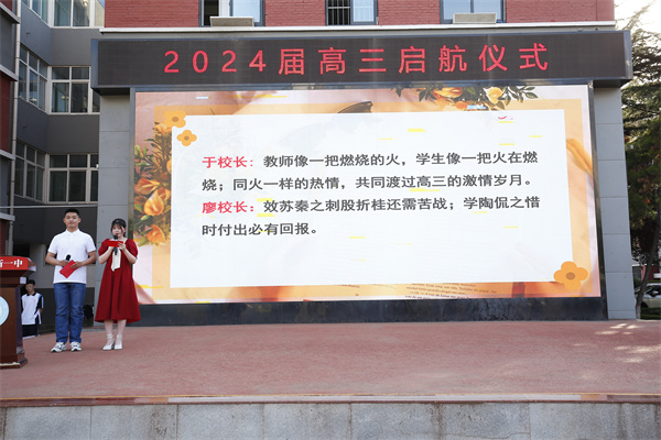 主持人宣读于校长、廖校长、陈福民主任、吴晓艳主任、王元东主任、崔广伟主任对2024届高三的温馨寄语,每位老师的寄语都承载了对本届新高三的深切期望和祝福。