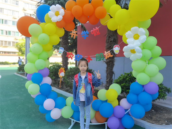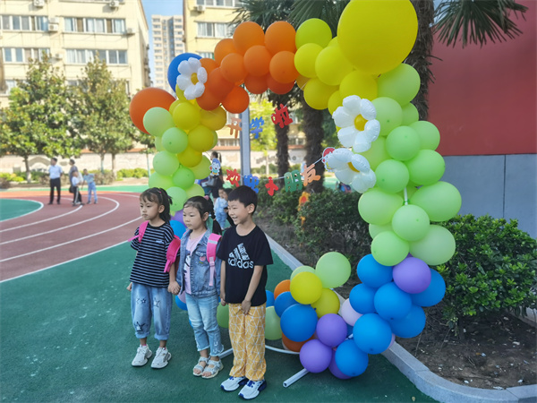 五彩的气球拱门前,一个个“小不点”用一张张照片记录着这重要的时刻。