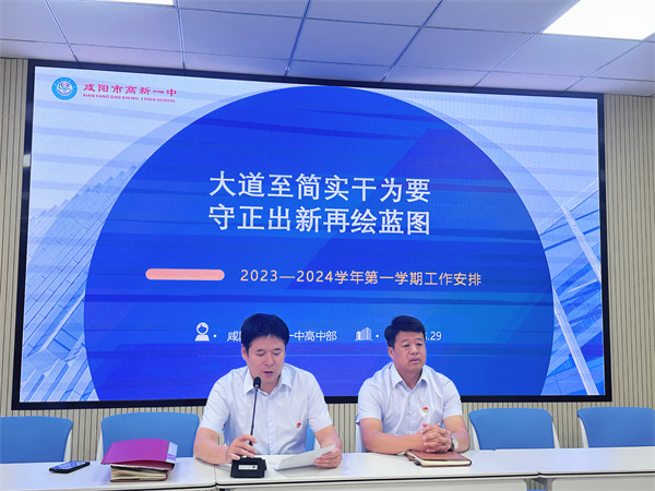新的征程,新的起点,为提前部署工作,凝聚力量,8月29日,咸阳市高新一中高中部召开新学期工作安排会。高中部教导主任陈福民主持。
