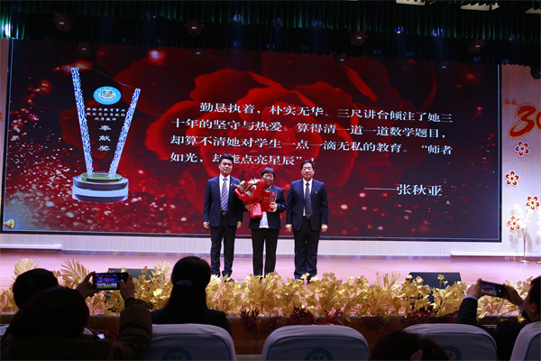 倾尽丹心育桃李,奉献韶华铸师魂。12月29日,咸阳市高新一中隆重举行“从教30年”教师庆典暨迎新年晚会。学校党总支书记、校长于建营,副校长程颖斌、杨东、廖荣、李江河,校长助理王元东、工会主席王中社及全体教师近280余人齐聚一堂,向为教育事业默默奉献三十载的教师们致以崇高的敬意。