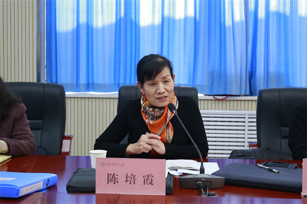 高中部教研主任吴晓艳汇报了学校校本研修工作的指导目标、重点和特色以及教师的个人成长等相关情况。