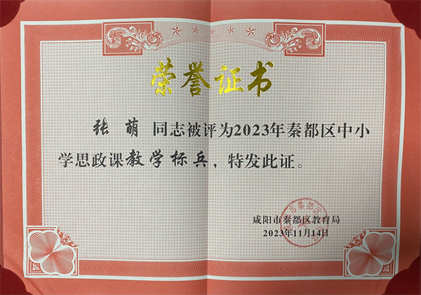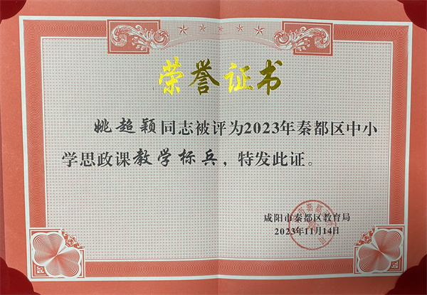热烈祝贺我校张萌、姚超颖两位教师荣获“2023年秦都区中小学思政课教学标兵”称号。