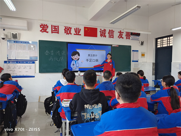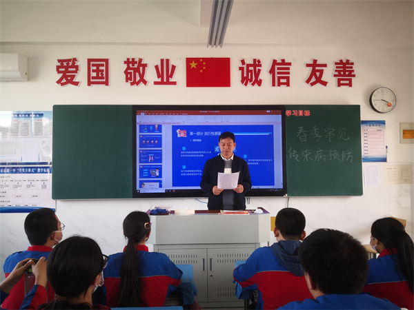 春季是呼吸道传染病的高发季节。为切实加强学生春季传染病的防治工作,保障学生身体健康和生命安全,提高师生、家长的卫生意识以及应对春季传染病的能力。3月19日,咸阳市高新一中初中部开展春季常见传染病预防知识宣传主题班会活动。