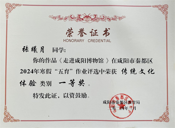 咸阳市高新一中被评为2024年寒假“五育”作业先进集体;张曦月等11名学生分别荣获一、二、三等奖及优秀奖!