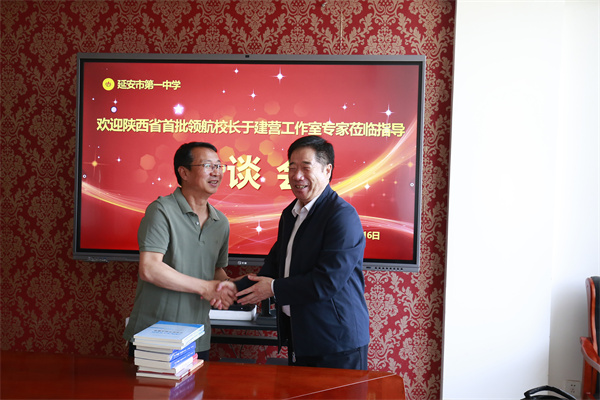 4月16日,于建营领航校长工作室团队一行6人来到延安市第一中学,通过参观学习、交流座谈、安排研修任务、赠送书籍等形式实地走访史晓峰校长及他带领下的团队。