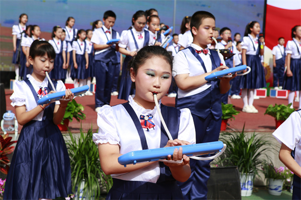 五年级的同学们则用乐器表演《硕果时光派对》为大家带来了不同的感受。他们运用各种乐器演奏出美妙的音乐,仿佛将观众带入了一个充满欢声笑语的派对现场。