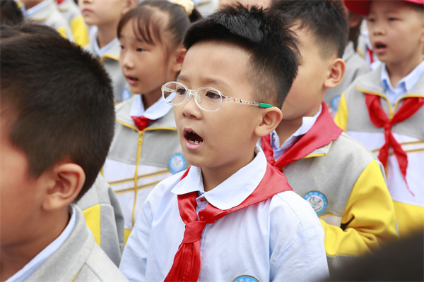 二年级新老队员及六年级队员代表齐唱《中国少年先锋队队歌》,歌声嘹亮,激情满怀,展现了新时代少先队员的蓬勃朝气与坚定信念,激励着每一位少先队员不忘初心,牢记使命。