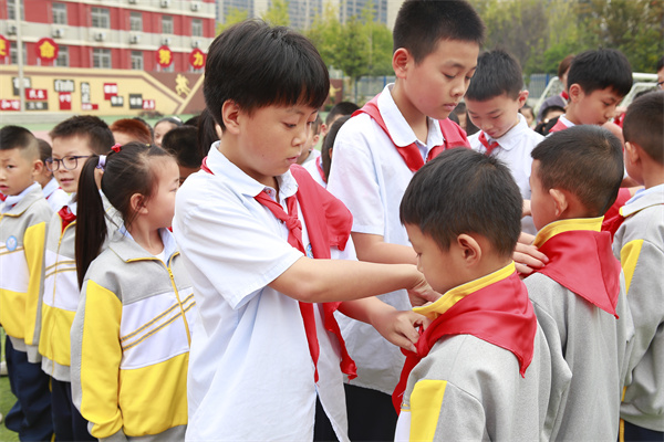 在庄严的宣誓声中,一批新队员佩戴上鲜艳的红领巾,正式成为少先队大家庭的一员。他们面向队旗,紧握右拳,许下庄严的承诺,承诺将继承和发扬少先队的光荣传统,努力学习,争做新时代好少年。