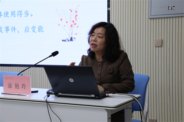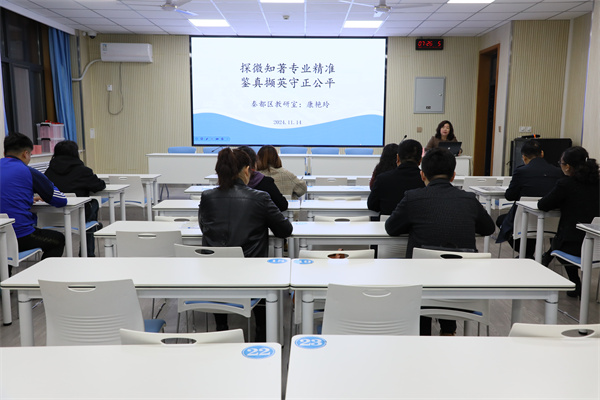 秦都区教研室康艳玲副主任从比赛概要、评分标准、关注点位、注意事项等方面对评委进行培训,要求全体评委要做到三个一,“一颗公心不偏私、一把尺子不偏倚、一份尊重不偏见”。