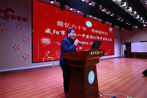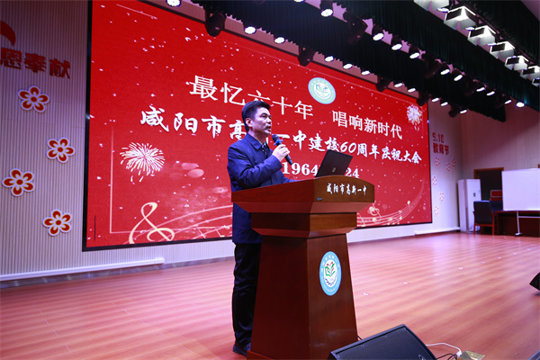 随后,党总支书记、校长于建营发表了激情洋溢的致辞。他首先对全体教职员工多年来的辛勤付出和无私奉献表示了衷心的感谢和崇高的敬意。于校长指出,咸阳市高新一中能够走过60年的风雨历程,离不开一代又一代教育工作者的不懈努力和坚持。