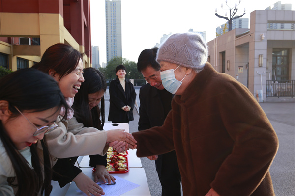 最后,于建营校长代表学校发表了致辞。于校长首先对退休教师们的到来表示了热烈的欢迎和衷心的感谢,并简要回顾了学校六十年来的发展历程和取得的辉煌成就。60载薪火相传培桃育李,一甲子教育赓续情洒高新。回望历史,学校经历了无数风雨,始终勇于改革思变,不断谋求发展,在追赶超越中,突破自我。近年来,学校始终秉持“尊重教育”的办学思想和“教师幸福生活 学生健康成长”办学理念,致力于让每一位教师都感到尊重与价值,让每一名学生在科技化、智能化、数字化的校园环境中茁壮成长。未来,学校将继续把握教育事业改革发展面临的新使命、新任务、新责任,为建设学校教育高质量发展而不懈努力。