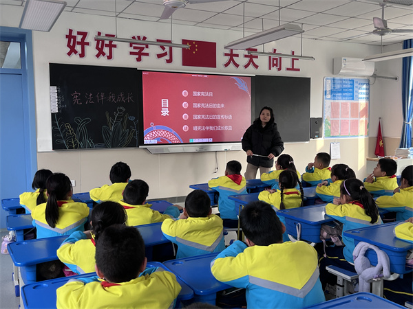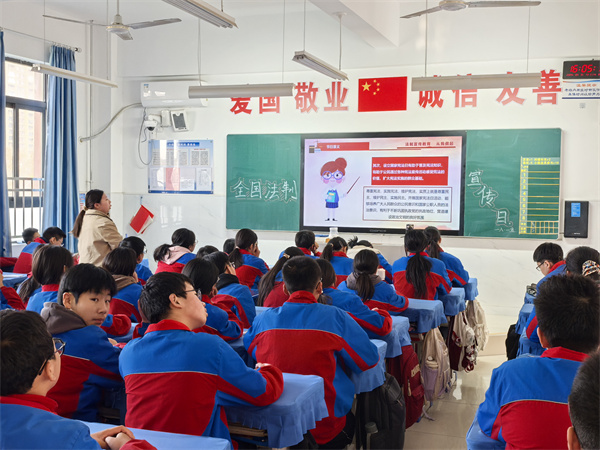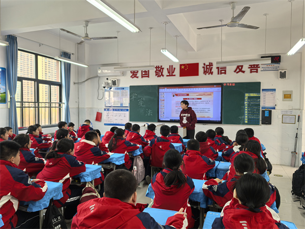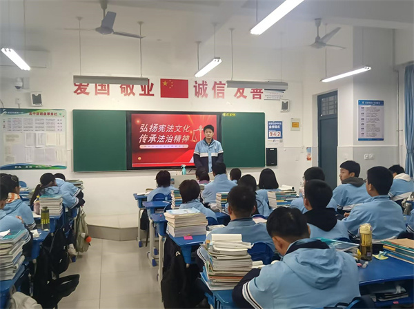 各班围绕“弘扬宪法精神 维护宪法权威”这一主题,通过生动的案例讲解、法律知识问答等形式,让宪法精神深入每一位师生的心中。班主任结合学生实际,用通俗易懂的语言解释了宪法的基本原则和主要内容,引导学生认识到宪法作为国家根本大法的重要性,并鼓励他们将宪法精神融入到日常学习和生活中。