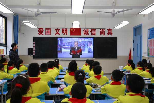 在各班教室,全体师生共同观看了全国教育系统“宪法晨读”活动直播活动。老师们以身作则,引领学生们在字里行间感受宪法的庄重与威严,领悟其中蕴含的深刻哲理。学生们则将全神贯注,用清澈而坚定的目光追随每一个条文,让法治的种子在心中悄然种下。