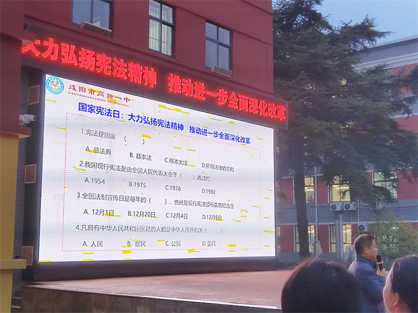 为学习贯彻党的二十届三中全会关于推进全面依法治国的精神,学习贯彻习近平新时代中国特色社会主义思想,大力弘扬宪法精神、社会主义法治精神,营造良好的法治教育氛围,推进校园法治文化建设,在第十一个国家宪法日来临之际,咸阳市高新一中开展了宪法周宣传活动。