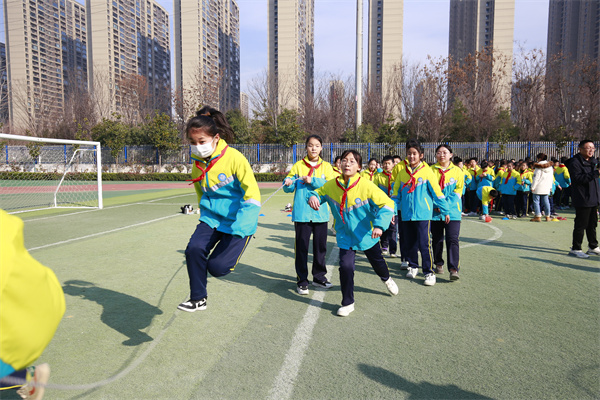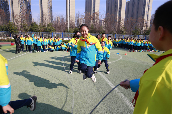 寒冬虽至,校园内却一片欢腾,同学们用飞舞的彩绳点燃激情,以跃动的步伐诠释青春的活力与力量。