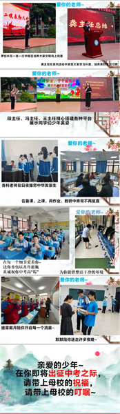 在最后的寄语中,杨校长说:“当中考战鼓敲响,少年,没什么好害怕,放心去拼吧。在你的身后,有永远爱着你的老师,有永远爱着你的母校!为梦而战吧!祝如愿!盼凯旋”