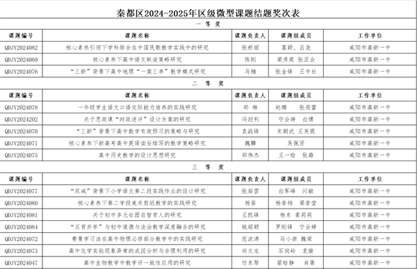 在秦都区2024-2025年度区级微型课题结题评选中,我校教师秉持严谨务实的研究态度,积极开展教育教学改革与实践探索,共有15项课题顺利通过结题验收,成果丰硕!