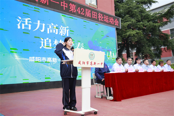 最后,校长刘小云宣布:“咸阳市高新一中第42届秋季田径运动会正式开幕!”全场爆发出热烈的掌声和欢呼声。
