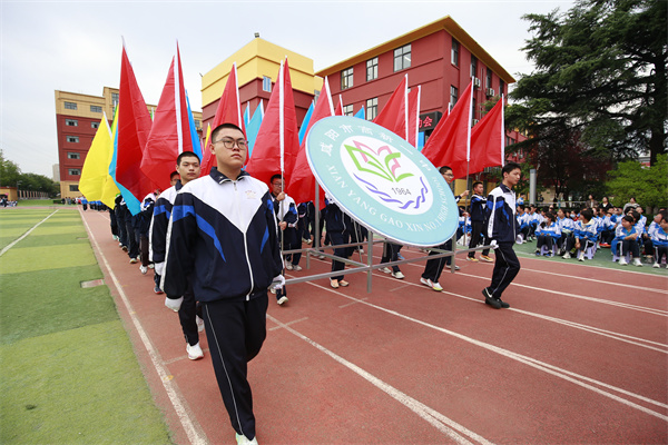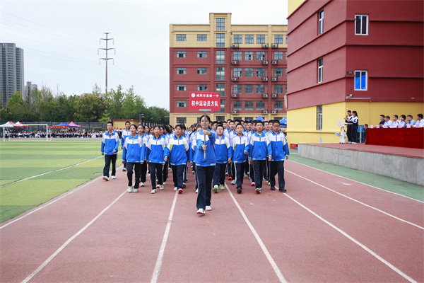初中部运动员、高中部运动员、志愿者方阵和裁判员方阵依次走过主席台,每个方阵都展现出高新师生朝气蓬勃的精神风貌。