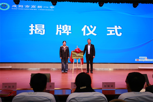 揭牌仪式环节,副校长王军与家委会代表共同为“三秦家长学校咸阳市高新一中家长学校”揭牌。随着红色幕布的缓缓揭开,标志着我校家校共育工作迈入了制度化、规范化、科学化的新阶段。这块牌匾不仅是一份荣誉,更是一份沉甸甸的责任与承诺,预示着家校携手、同心同行的育人之路将更加宽广。