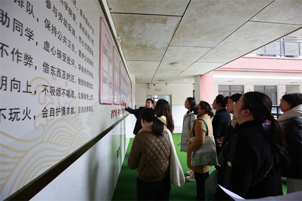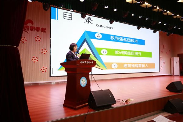 在学校五楼报告厅,我校小学部教科研主任张国华与初中部德育主任冯迎利分别为代表团作了专题报告。张主任围绕小学部的办学特色,系统阐释了在课程体系构建、课堂教学改革及教育科研引领方面的思考与探索;冯主任聚焦立德树人根本任务,详细分享了初中部在德育工作、班级管理及学生全面发展方面的有效实践。两位主任的汇报内容翔实、案例生动、逻辑清晰,全方位、多角度地展示了我校教育教学的丰硕成果与独特风貌,赢得了在场教师的阵阵掌声。