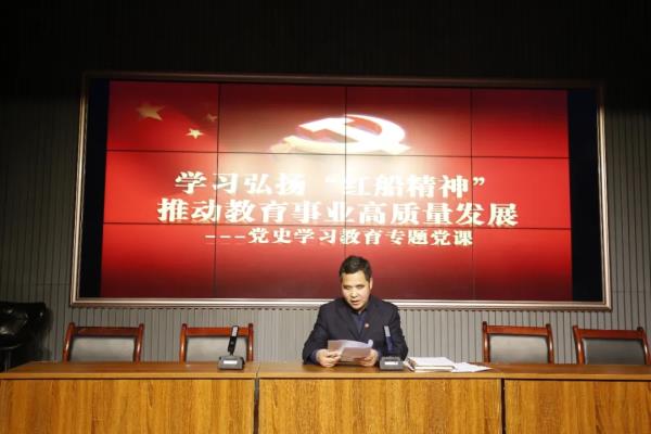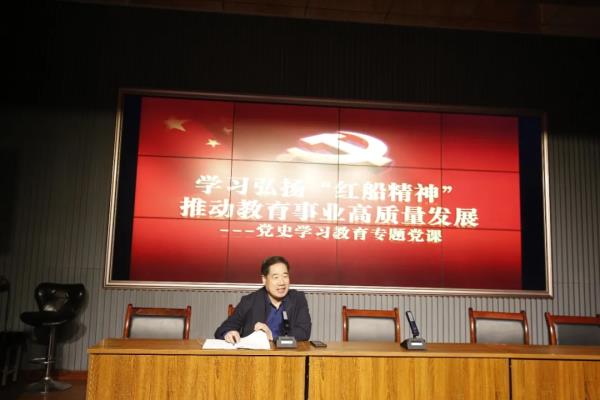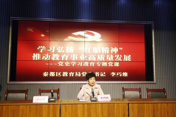会议特邀秦都区教育局党委书记李巧维做了题为《学习弘扬“红船精神”推动教育事业高质量发展》的党史学习教育专题报告。她强调,“红船精神”集中体现了中国共产党的建党精神,是中国革命精神之源,是党的先进性之源,凝结着我们党的初心,体现着我们共产党人的价值追求。希望参会人员全面领会把握“红船精神”的深刻内涵,高举习近平新时代中国特色社会主义思想伟大旗帜,坚持党要管党、全面从严治党,不忘初心、牢记使命,积极发挥“红船精神”所承载的首创精神、奋斗精神、奉献精神,当好“红船精神”的坚定捍卫者、忠实传承者、自觉践行者。她要求,全系统要坚持立德树人,坚持改革创新,大力实施办学条件、教育质量、教育内涵、教师素养、教育生态“五大”提升工程,加快推进教育现代化,全力打造陕西教育新高地。