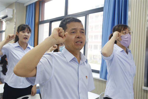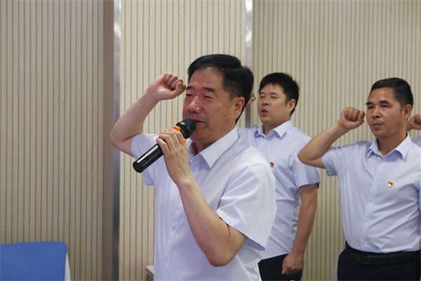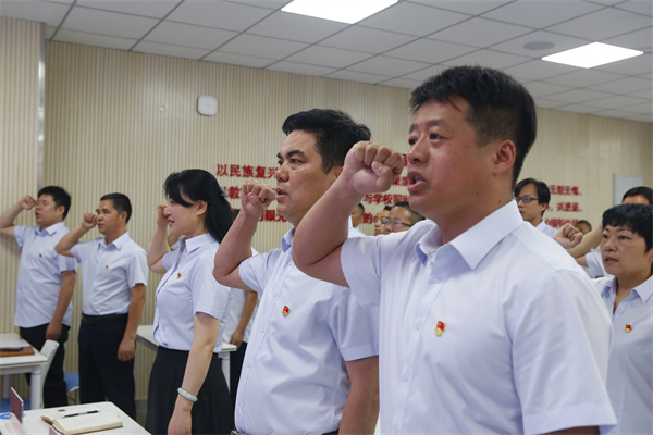 “我志愿加入中国共产党,拥护党的纲领,遵守党的章程,履行党员义务,执行党的决定......”在于建营的带领下,全体党员高举右拳,庄严宣誓,铮铮誓言,掷地有声,表达了他们不忘初心、砥砺前行的决心。